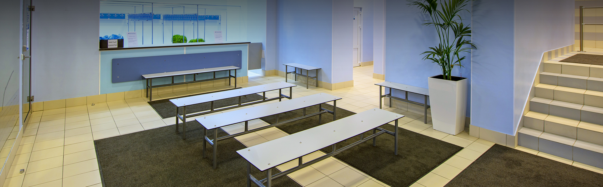 - Входная зона и гардеробная плавательного бассейна оборудована мебелью FOREMAN: