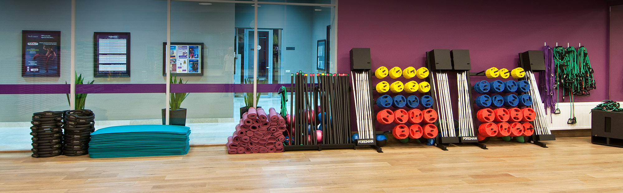 - Танцевальный зал и зал групповых программ: аксессуары AIREX, BOSU, THE STEP, BODY BAR, FOREMAN, TOGU, DITTMANN и др.