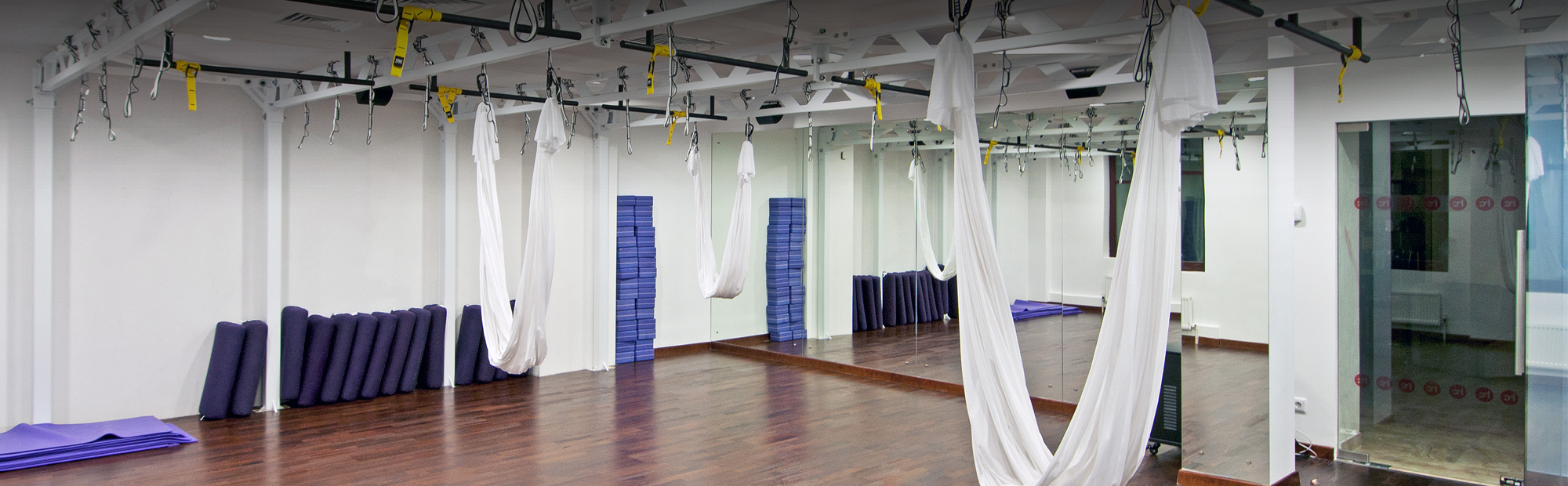 - Студии йоги: аксессуары HUGGER MUGGER и ANTIGRAVITY, рама для антигравити FOREMAN.