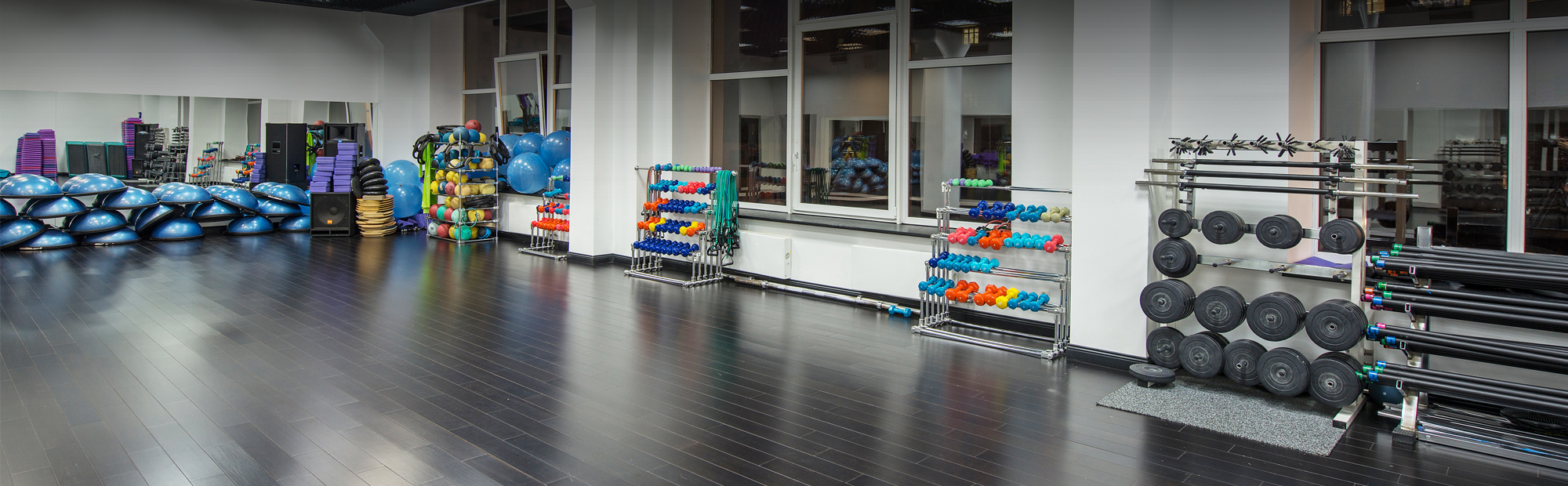 - Залы для групповых и индивидуальных занятий: аксессуары THE STEP, BOSU, AIREX, BODY BAR, FOREMAN, DITTMANN, ANTIGRAVITY и др.