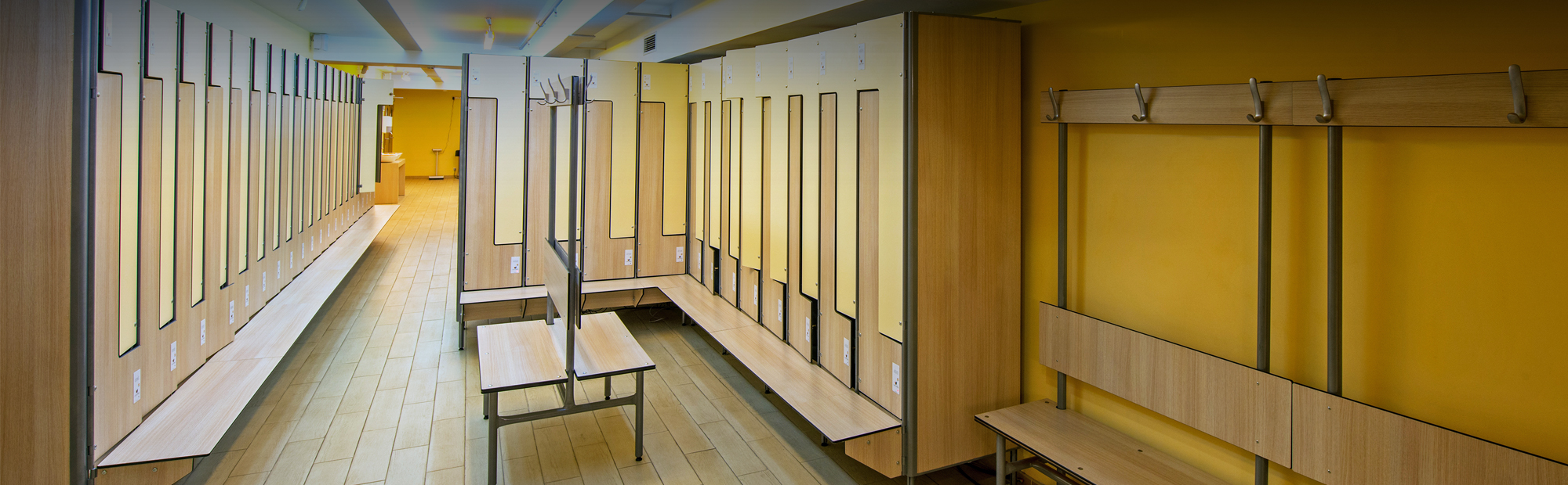 - Раздевалки: мебель FOREMAN с электронными замками Gantner.