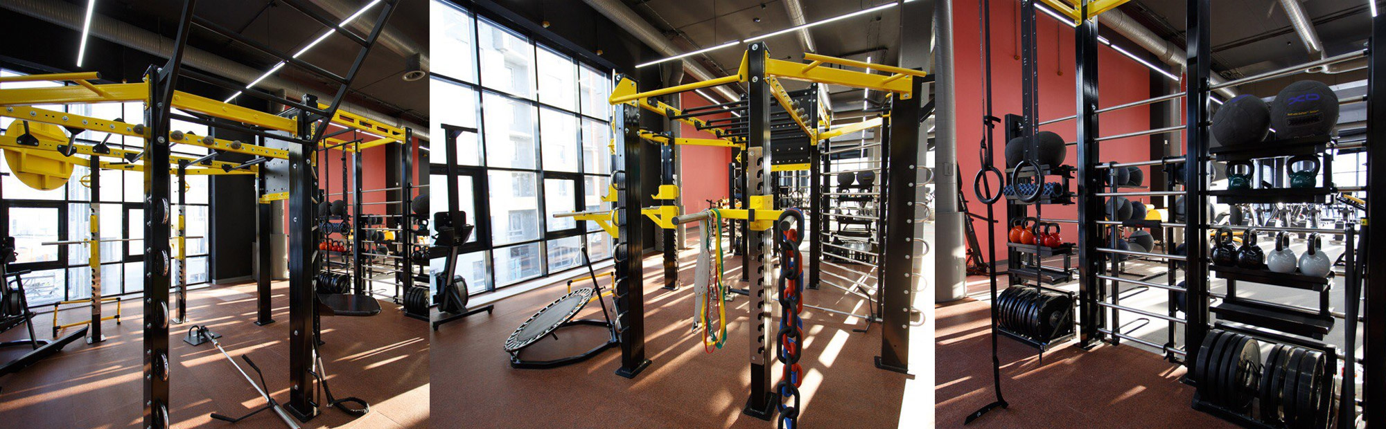 В зоне групповых занятий представлены популярные аксессуары для функционального тренинга: цепи U9, медболы XD Kevlar,