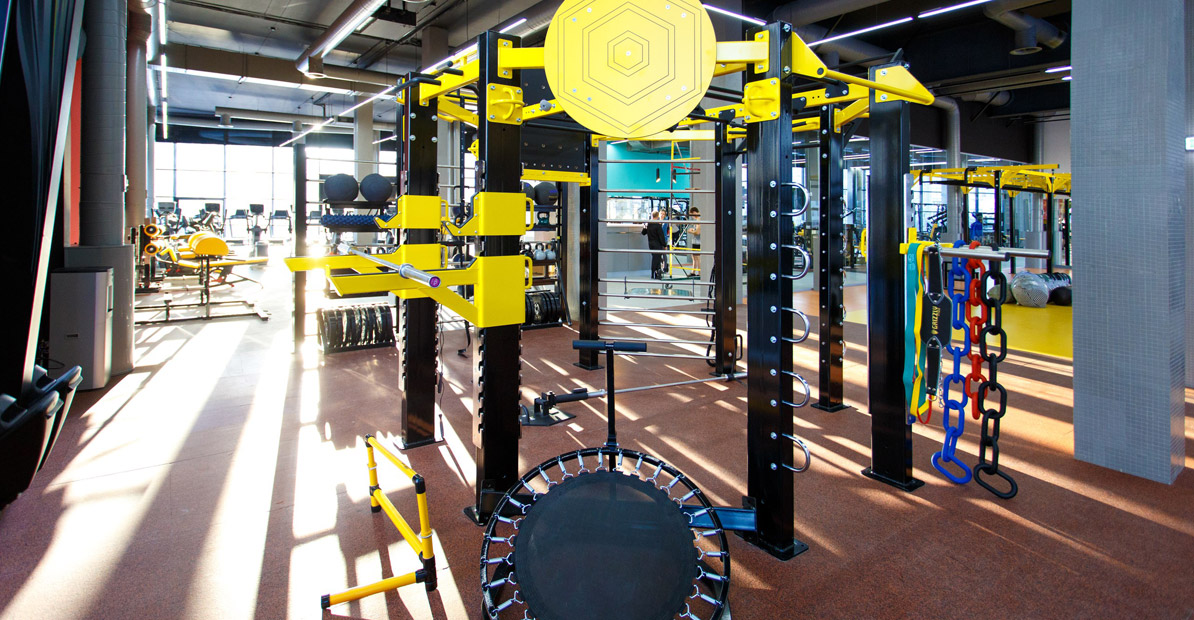Стойки ресепшн напоминают стойки регистрации, а расписание тренировок — табло вылетов. Посетители клуба проходят «таможенный контроль» — на входе установлены турникеты с системой контроля доступа Gantner. Один браслет контролирует все действия клиента — от момента, когда он отмечается при входе в клуб, и до момента, когда покидает его.
