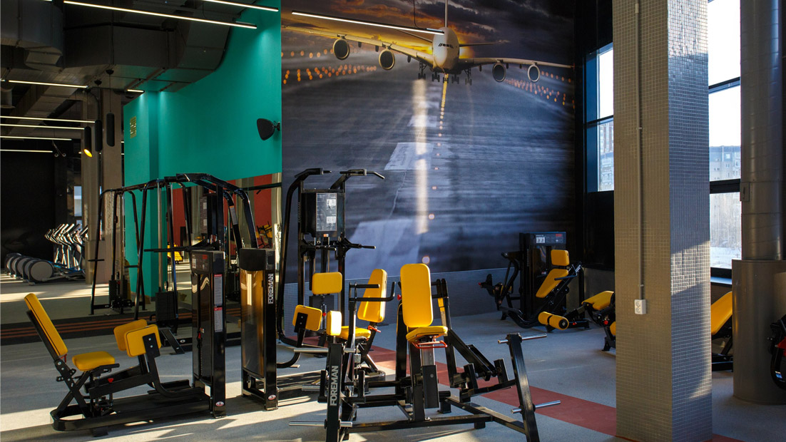 Суперкомфортабельный «Port Fitness» представляет собой импровизированный аэропорт, где пассажиры отличаются спортивным телосложением, а вместо кресел — кардиотренажеры. Дизайн клуба выглядит стильно, смело и свежо.