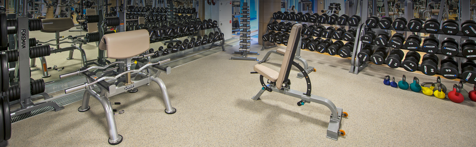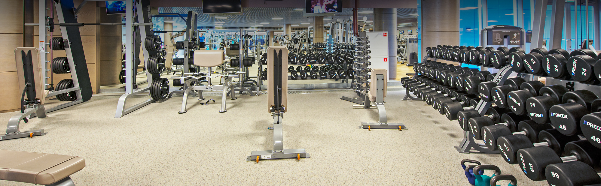 - Тренажерный зал: кардиотренажеры PRECOR с ПО PREVA, силовое оборудование PRECOR, рамы и свободные веса FOREMAN