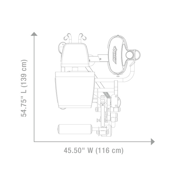 В исходном положении тело находится в более вертикальном положении, чем в классических моделях, что упрощает вход и выход из тренажера.